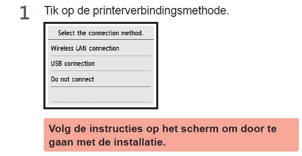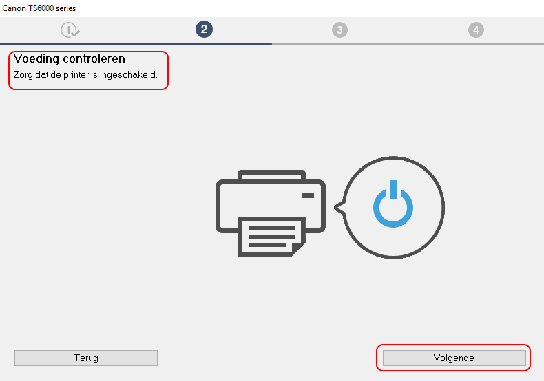 De overtollige vraag of de printer aanstaat (natuurlijk staat deze aan) je bent deze aan het installeren.