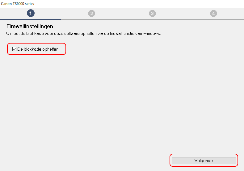 Nu in het volgend scherm klik je direct op <Volgende>, ‘de blokkade opheffen’ MOET blijven aangevinkt.