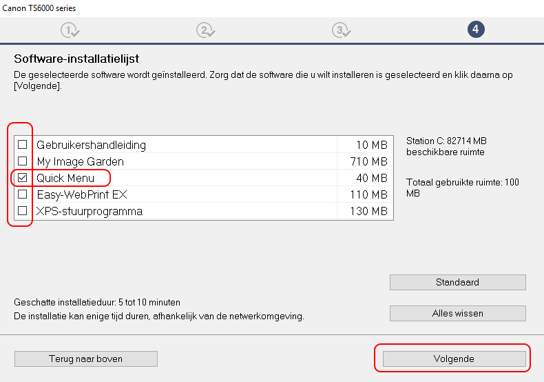 Nu gaat de installatie verder met de programma’s welke op de computer geïnstalleerd worden. Naar mijn mening enkel de ‘Quick Menu’ is van toepassing. Je kan hier zelf beslissen wat je wenst. Klik op <Volgende>.