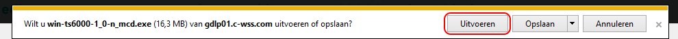 Onderaan het volgend venster trek je je niks aan van het ‘Canon’ venster in het midden, je mag dit zelfs sluiten met het kruisje bovenaan rechts. Maar je klikt onderaan in de gele balk op <Uitvoeren>.