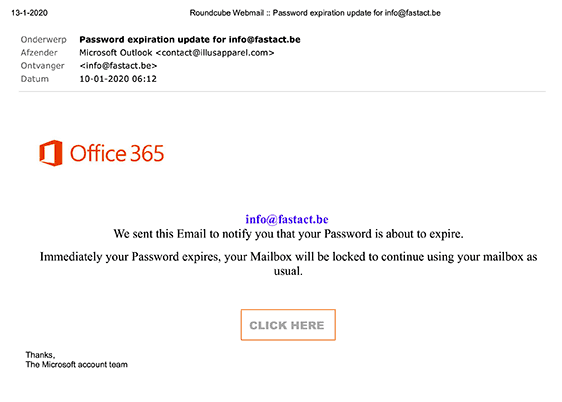 Dit zijn een paar voorbeelden van “fake-emails”. We kennen allemaal de e-mails van bankinstellingen, politie, providers, overheid enz.. die je vragen om je persoonlijke gegevens. Ook de gekende ketting e-mails waar er om geld gevraagd wordt omdat een kennis in het buitenland zijn papieren verloren heeft. Klik nooit in deze mails op links of bijlagen. Let ook op voor updates van programma’s, de bekende zijn  “flash, java, Windows updates”