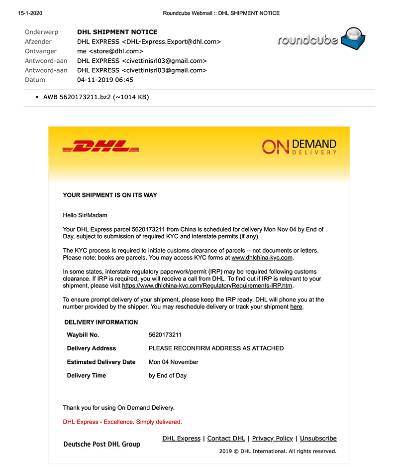 Enkele e-mails als voorbeeld om persoonlijke gegevens te achterhalen of om ransomware te droppen op je computer.Mensen, als je zo een email ontvangt, stuur deze NOOIT!!! door naar iemand. Doorsturen naar ‘Safe On Web‘. Daarna DIRECT verwijderen.