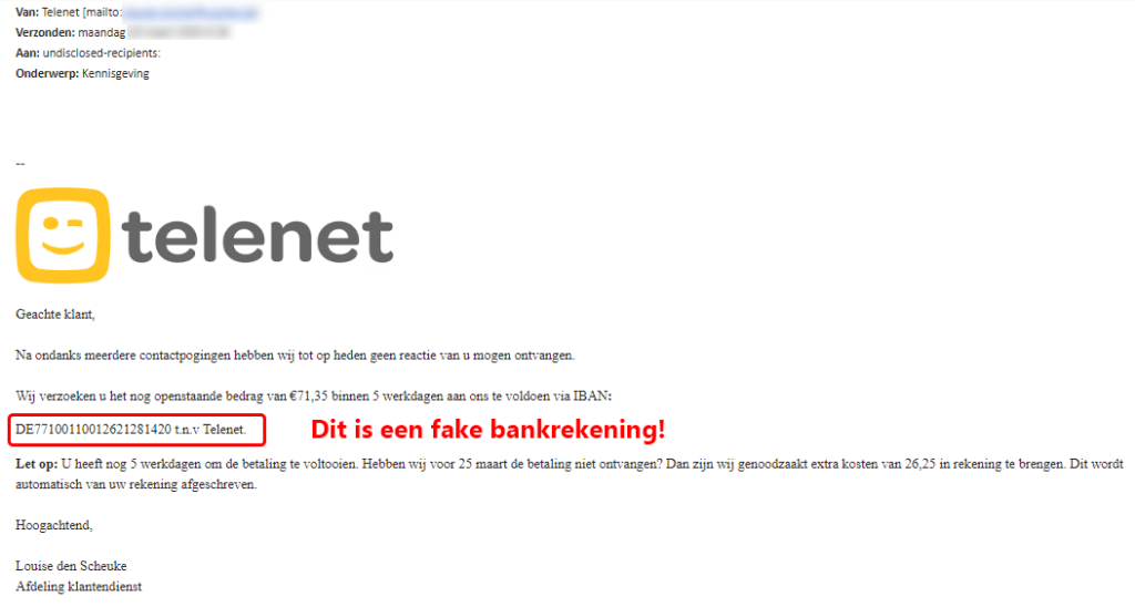 Telenet stuurt nooit zelf volgende berichten!